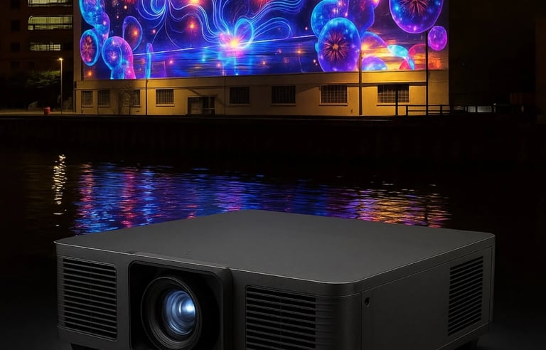 Projection grand format pour façades, scènes et environnements immersifs.