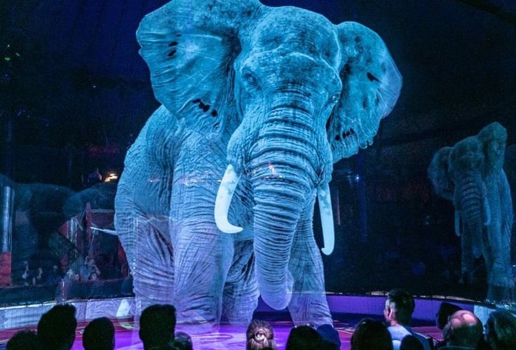 Toile holographique créant des illusions 3D et effets flottants sur scène.