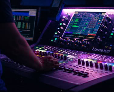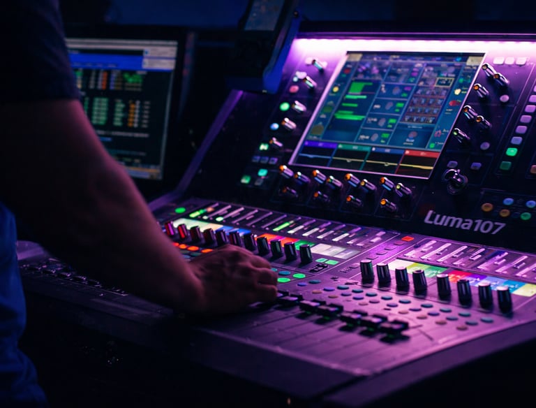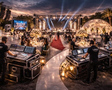 Coordination son, lumière, vidéo et énergie depuis une régie centralisée assurant fluidité et contrôle total de l’événement.