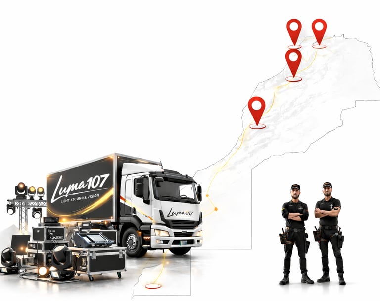Luma107 assure la location de matériel audiovisuel et événementiel sur l’ensemble du territoire marocain.
